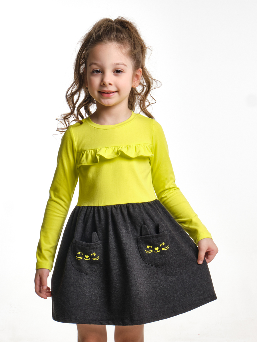 Выполнено из 100% хлопкового набивного текстиля. Дополнительное полотно: текстиль без принта, 100% хлопок. Крой отрезной по талии с защипами книзу, высокая горловина с бантом-завязкой, длинный рукав на манжете, сквозная застежка (пуговицы). Декорировано широкой рюшевой оборкой по подолу. Подходит как универсальная одежда для детсада, прогулок и игровых площадок в теплый сезон и как вариант домашней одежды.