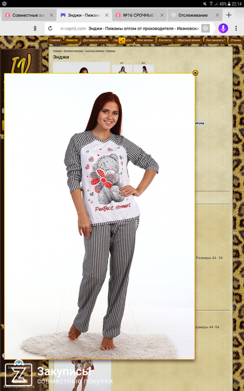 ДУ. В закупке заказывала несколько позиций. Спасибо Екатерине. Все пришло отличного качества, размер в размер, кроме одного костюма Джессика (http://iv-capriz.com/shop/749/desc/dzhessika#tab1#tab1). Мне кажется, что поставщик перепутал этикетку с размером. Заказывала размер 46, а реально, мне кажется на размер 40-42. Костюм отличного качества, яркий, как на картинке. Буду пристраивать, цена 900 руб.