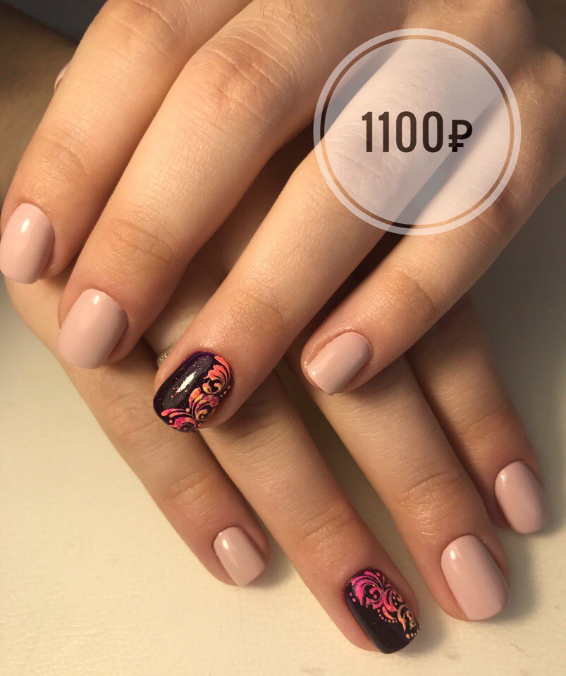 Однотонное покрытие ногтей гель-лаком (в стоимость входит маникюр и выравнивание ногтевой пластины) - 900 рубВСЕГО: 1200руб