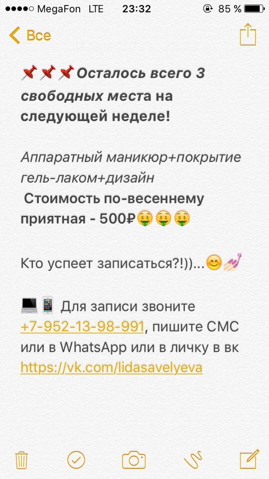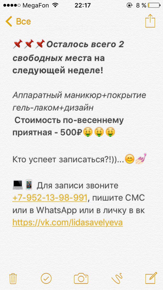 Девочки, каждый раз  перед записью  (ориентировочно за сутки!!!) я отправляю вам так называемую СМС-напоминалку.