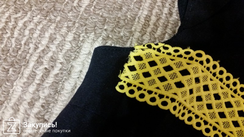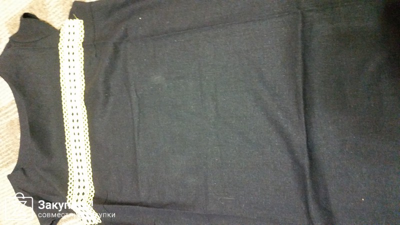 бархатное черное платье до колена с вставкой на груди из блестящей ткани, очень красивое, но большой минус, что забыли эту вставку пришить. Мы долго смеялись😁, аж до слез 😂, когда надели платье вся грудь была наружу. Конечно исправили это недоразумение, но мы же брали готовое платье.