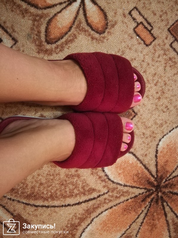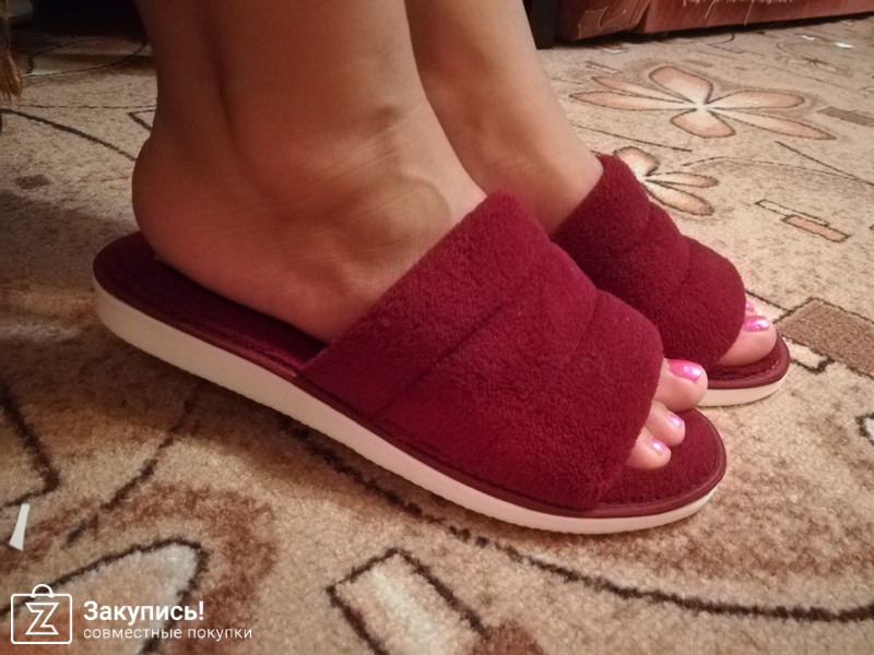 Тапочки понравились! На первый взгляд показались так себе( в машине вечером посмотрела, не смогла до дома дотерпеть...). Но дома открыв, одев, посмотрев: поняла-круть за копейки! Маломерки, на размер ровно. Ношу 37,5-38, 38 натянула ,но полразмера бы мне к ним... Заказывать буду и много. Всем родственникам на презент, так как ножке в них очень хорошо. Походила дома, комфорт!