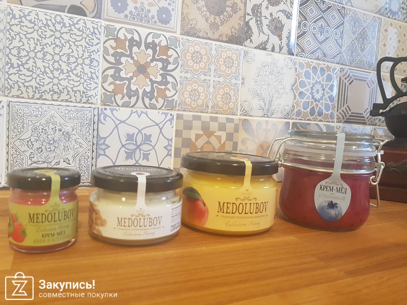 Брала из пристрой крем мед дыневый и с кадровым орешком. Оба очень вкусные конечно лучше намазать на батон или хлеб тонким слоем сам по себе продукт очень сладкий.