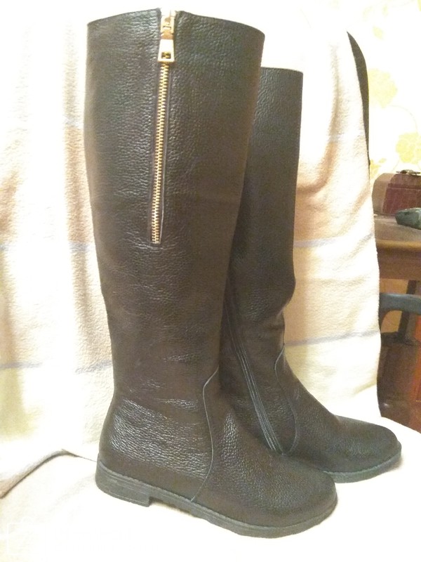 Добрый день! Сапоги мне понравились, а самое главное подошли по размеру, только замок застёгиваю пока с трудом, но думаю со временем подрастянутся. У модели очень удобная подошва и каблук, в тех местах, где раньше ходила с осторожностью, боясь упасть, в этих сапогах шагаю смело, ощущение, как-будто \"приклеиваюсь\" подошвой к поверхности дороги. Я довольна. Юля, спасибо !!!