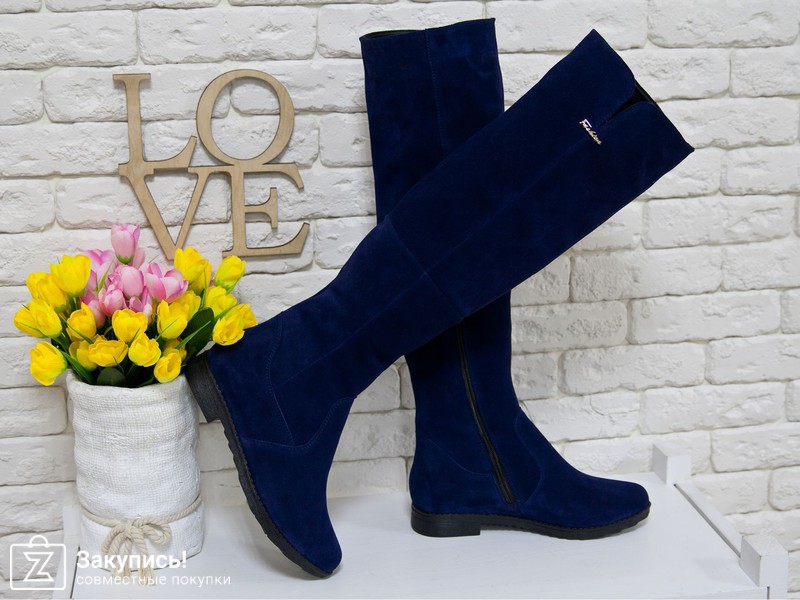 Цвет изумительный....Одна печаль: обувь без каблука заказывала в черной коже, но по факту пришли обе модельки в идентичной темно синей замше (цветопередача отличается из-за вспышки).