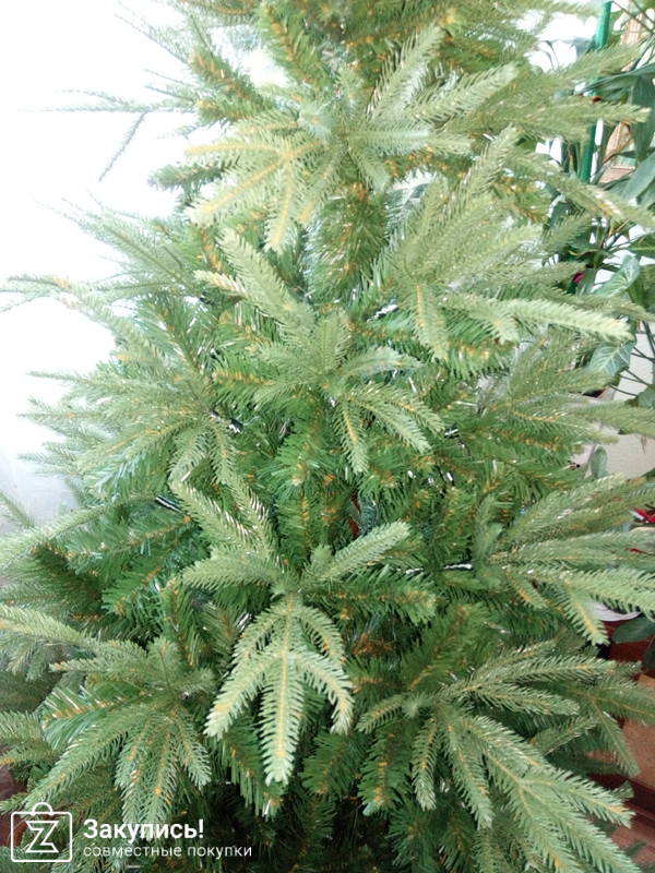 Купили елку премиум Грацио 1,8м. Елка замечательная! Запаха нет.Состоит из 3х частей, собирается легко, стоит устойчиво. На кончиках веточки с резиновыми иголочками, смотрятся очень натуралистично, особенно потому что самые кончики окрашены светлее, как у живой елки.Ближе к стволу конечно \"иголки ленточные\", но вид это не портит. Главное, как писали выше, распушить ветки и все будет замечательно! Спасибо организатору!!!