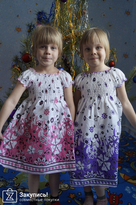 Платье с котенком 961459427 р. 30, классное, длинноватое. Написано Узбекистан, на самом деле Россия, 100 х/б. Платья бело-фиолетовое 961630668 р.30 и бело-розовое 961630667 р.32 написано Россия и 100% полиэстер, кто производитель на самом деле установить не удалось...Не смотря на кажущуюся ширину, платья на стройных девочек, резинка и рукава узковатые.