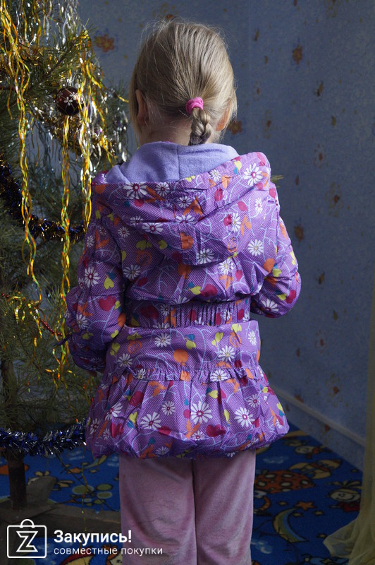 Куртки розовая 961674336 р. 32 и сиреневая 961674335 р. 30 Производитель написано Китай и 100 полиэстер.