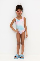 Слитный купальник на лямках для девочки. Оригинальная набивка выполнен из стойких гипоаллергенных красителей.— Описание у На сайте поставщика