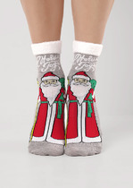 женские носки с рисунком деда мороза, надписью с новым годом, борт выполнен из пряжи травка— Описание у На сайте поставщика