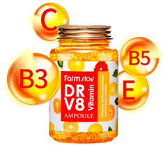 Farm Stay DR-V8 Vitamin Ampoule 250ml – Отбеливающая Ампула-сыворотка для лица