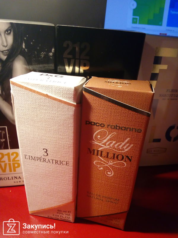 Получила заказ и тут же раздала владельцам) все довольны. каждый получил, что хотел. Про свой аромат напишу позже. Пока быстро про этих малышей \" D&G L\'Imperatrice 3 (Дольче Габанна императрица) для женщин 60 ml. С феромонами.\" На сайте это разлел Компактная парфюмерия-Парфюм с феромонами 60 мл. Заказывала не себе. Хозяйка забрала и перед уходом брызнула на меня) проверить стойкость. Они громкие, точная копия. Я час терпела, ждала пока затихнут. Они не собирались затихать. Пошла смывать с мылом. Не смылись, еще и шлейфят. Пошла смывать с шампунем. Не смылись, только шлейфить перестали. Кожа все равно пахла. Вобщем, если нравится сам аромат и неважна упаковка, эти очень хороший вариант. Ферромонов не видела, а запах очень точен.