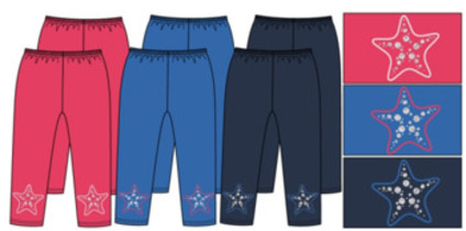 Бриджи для девочки без боковых швов с резинкой в поясе. В области колен декорированы принтами.