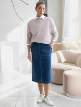 Джинсовая юбка миди с разрезом из эластичного облегченного денима