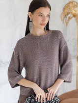 Джемпер с V вырезом и коротким рукавом из хлопковой пряжи с пайетками