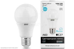 Лампа Gauss Elementary LED A60 10W E27 6500K 1/10/50 (23230)
