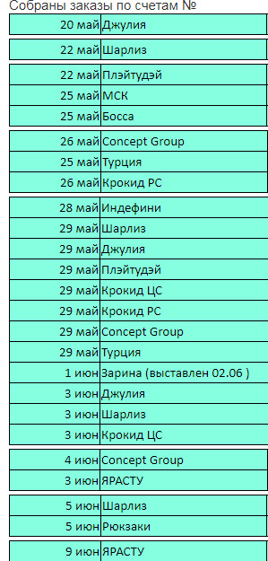 По срокам должны отгрузить в конце недели, точнее напишу в пятницу- субботу т.к отгружают не выкупами а пришидшими на склад торговыми марками (т.е на каждого производителя приходит отдельный счет) и при отгрузки мне пишут номера счетов которые отгрузили.