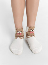 рис.2793 Гладкий детский носок с резинкой, средней высоты и объемным рисунком в виде медведя.— Описание у На сайте поставщика