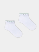рис.3193 Гладкий детский носок с резинкой, средней высоты и рисунком в виде бантика.— Описание у На сайте поставщика