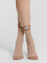 рис.3180 Детский укороченный носок с рисунком в виде полосок и мишки.— Описание у На сайте поставщика