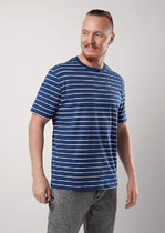 Фуфайка с коротким рукавом среднего объема, круглым вырезом горловины, которая оформлена обтачкой из рибаны.— Описание у На сайте поставщика