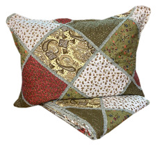 Покрывало пэчворк с наволочками РОЗЫ НА ОЛИВКОВОМ