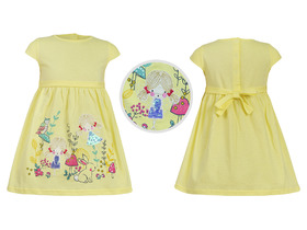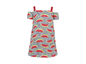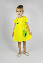 Кулирное полотно:100% х/б.Платье-прямой силуэт,на лямках,короткий двойной рукав-открытое плечо.Печать на лямках.