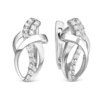 Серебряные серьги 925 пробы с бесцветными фианитами - 012