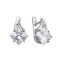 Серебряные серьги 925 пробы с бесцветными фианитами - 016