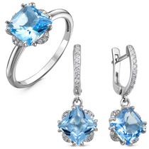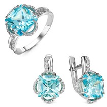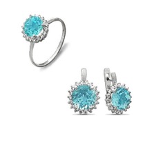Металл: серебро; Тип вставки (камня): фианиты; Проба: 925; Цвет вставки на фото: голубой; Вес: 6 г