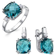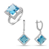 Гарнитур из серебра с фианитами голубого цвета - 285