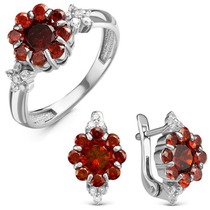 Серебряный гарнитур с фианитами цвета гранат 005