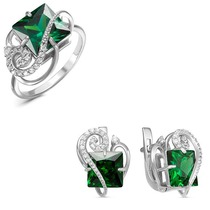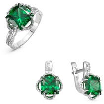 Тип вставки (камня): фианиты; Проба: 925; Металл: серебро; Цвет вставок: зеленый; Вес: 5 г— Описание у На сайте поставщика