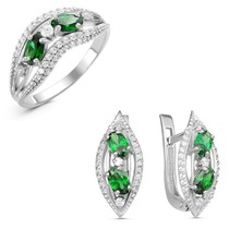 Проба: 925; Металл: серебро; Тип вставки (камня): фианиты; Цвет вставок: зеленый; Вес: 7.4 г— Описание у На сайте поставщика