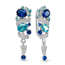 Серебряные серьги 925 пробы с синими фианитами - 657