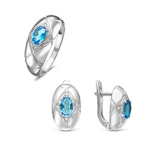 Цвет вставки на фото: голубой; Проба: 925; Металл: серебро; Тип вставки (камня): топаз, фианиты; Вес: 3.2 г