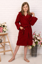 Халат детский махровый "Элит" с капюшоном, цвет: 945-Бордовый, р. 128/134