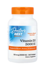 Doctors Best, витамин D3, 125 мкг (5000 МЕ), 360 капсул