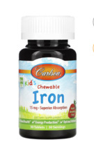 Carlson, Kids Chewable Iron, клубника, 15 мг, 30 таблеток