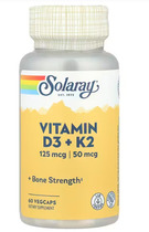Solaray, витамины D3 и K2, без сои, 60 растительных капсул
