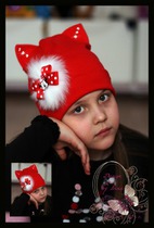 Шапка-кошка КРАСНАЯ с композицией Butterfly