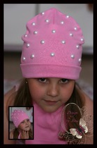 Розовая шапочка с жемчугом