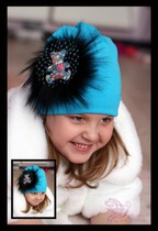 Бирюзовая шапка с пионом Blue