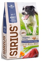 Корм для собак Sirius для средних пород с индейкой, уткой и овощами 12кг