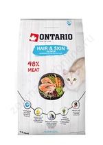 Корм дя кошек Ontario Hair&Skin забота о шерсти и коже с лососем 6,5кг