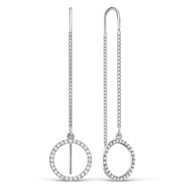 Серьги-продёвки из серебра с фианитами родированные 925 пробы ПС-075р200