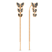 Серьги-продёвки из золочёного серебра с фианитами и родированием - Бабочки 925 п