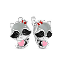 Серьги детские из серебра с эмалью и фианитами родированные - Енотики 925 пробы