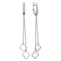 Серьги длинные из родированного серебра - Клеверы 21049р