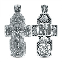 Крест православный из чернёного серебра - Пресвятая Богородица, спаси нас 3,9 см